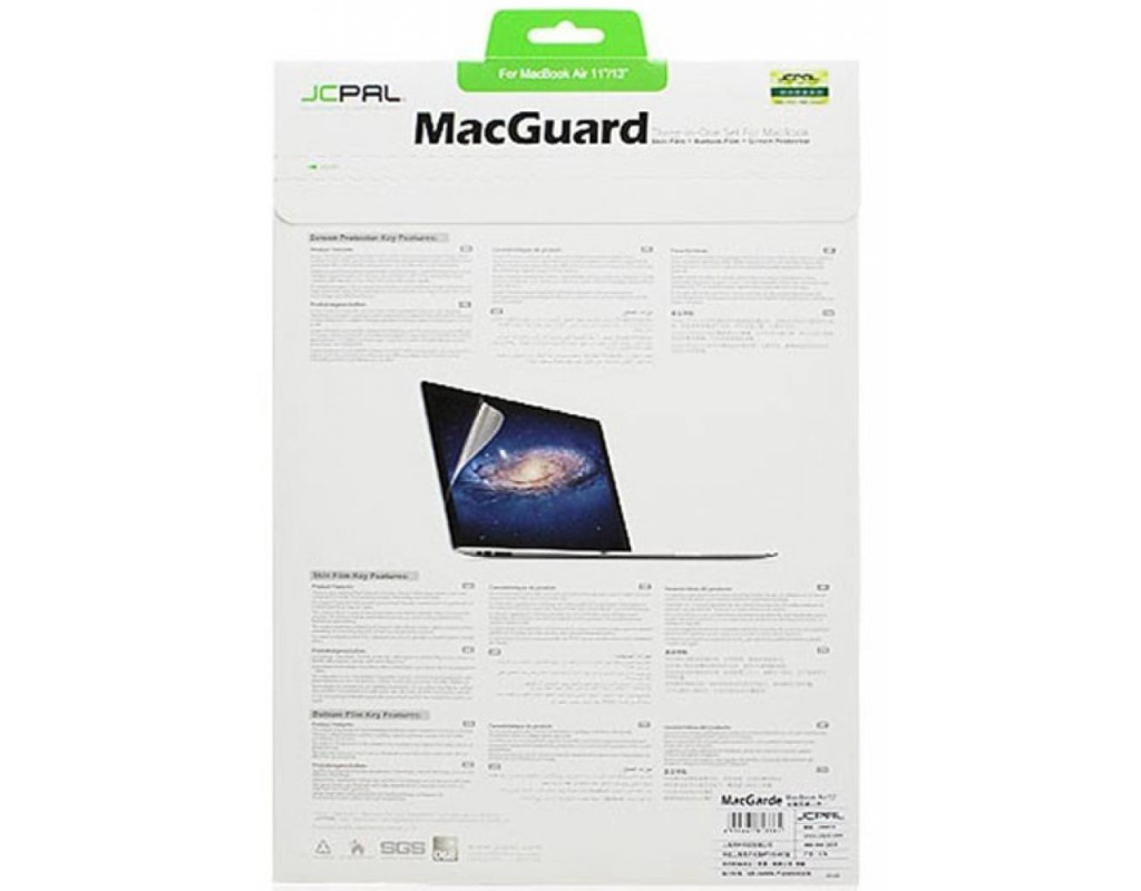 Плівка захисна JCPAL 3 in 1 set для MacBook Air 11 (JCP2043) має поглинаюче покриття, яке допомагає уникнути попадання бульбашок повітря при установці. Захист виконана з екологічного чистого матеріалу досить високої якості, нижній шар чутливий до натиснення. Також дана модель точно повторює форму корпусу, завдяки чому куточки корпусу повністю покриті захистом.