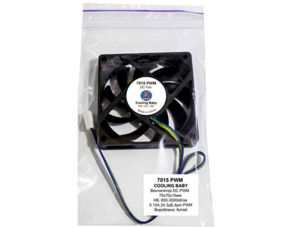 Кількість вентиляторів - 1, діаметр вентиляторів - 70 мм, тип підшипника - HDB (гідродинамічний), 3000RPM, тип роз'єму підключення - 4-pin, рівень шуму - 24.3 дБ