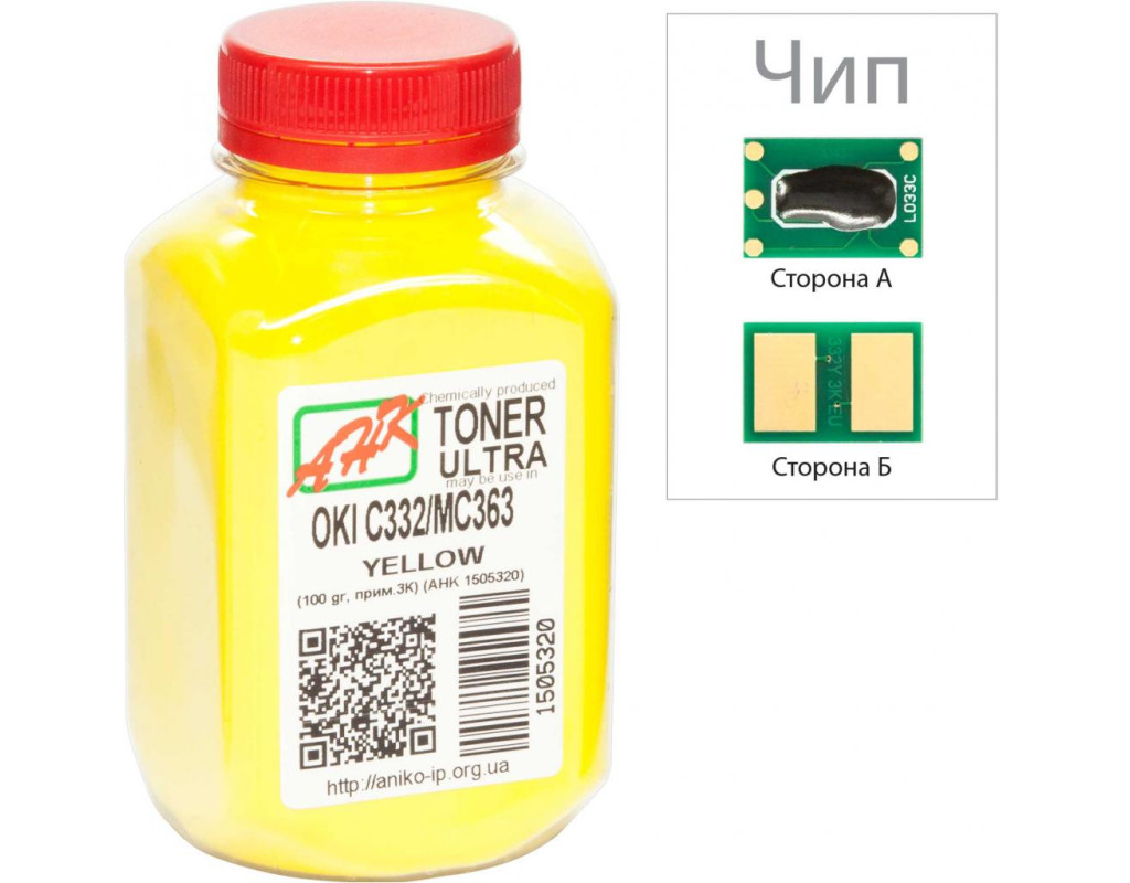 Тонер OKI C332/MC363, 100г Yellow+chip AHK (1505324)