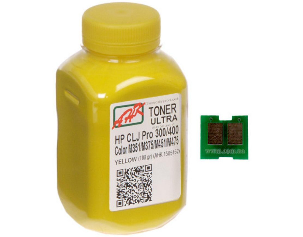 Тонер HP CLJ Pro 300/400/M475 100г Yellow +chip AHK (1505165)