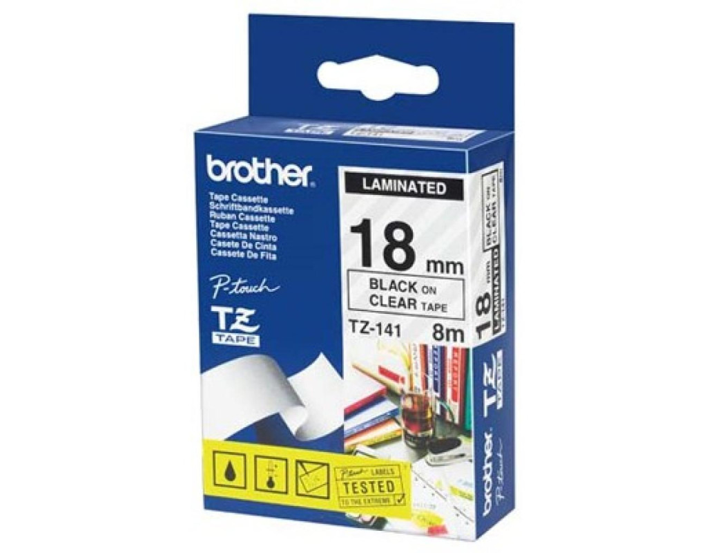 Brother 18mm Laminated clear, Print black (TZE141) - ламінована клейка стрічка.