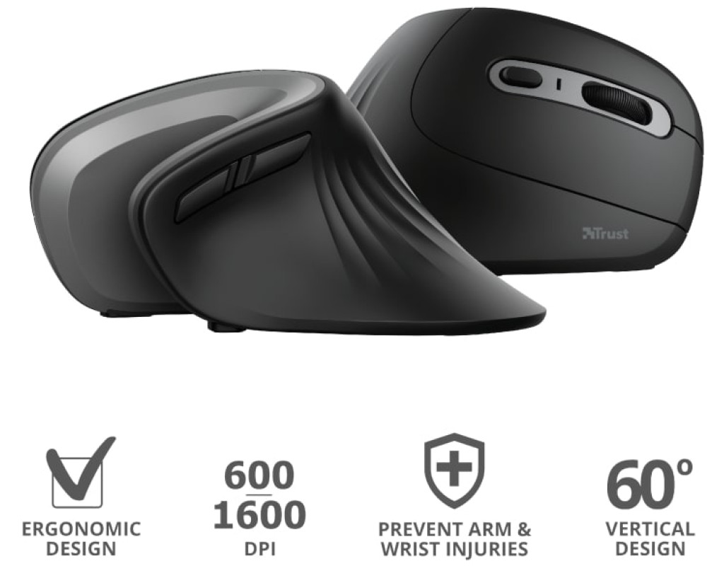 | Мишка Trust Verro Ergonomic Wireless Black (23507) — це досконалий інструмент для тих, хто цінує ергономічність та комфорт при тривалій роботі за комп’ютером. Унікальний вертикальний дизайн цього пристрою розроблений спеціально для зменшення навантаження на руку і кисть, що допоможе уникнути втоми та можливих травм під час тривалого використання. Завдяки своєму зручному захвату з м'яким гумовим покриттям, мишка забезпечує ідеальне прилягання до руки, роблячи роботу комфортнішою та ефективнішою. Вага у 115 г та розміри 137 х 68 х 74 мм роблять мишку оптимальною за розміром та зручною для будь-якої руки. Підключається через 2.4 ГГц USB адаптер, бездротова технологія гарантує стабільний зв’язок на відстані до 10 метрів. Завдяки вимикачу живлення та можливості зберігання мікроприймача безпосередньо у корпусі, Trust Verro забезпечує зручність використання та економію енергії. Живлення від одного елемента AA робить експлуатацію мишки простою та зручною. Ця мишка оснащена оптичним датчиком з регульованою роздільною здатністю у діапазоні 600-1600 dpi, що дозволяє обрати найкомфортніший режим роботи в залежності від потреби. Управління 5 кнопками, включаючи дві спеціальні кнопки для переходу між сторінками у браузері, робить процес навігації швидким і простим. Це ідеальний вибір для тих, хто прагне поєднати якість, функціональність та турботу про здоров'я на своєму робочому місці. Trust Verro Ergonomic Wireless Black — це більше, ніж просто мишка, це інструмент для підвищення вашої продуктивності та рішення для комфортної взаємодії з комп’ютером. |