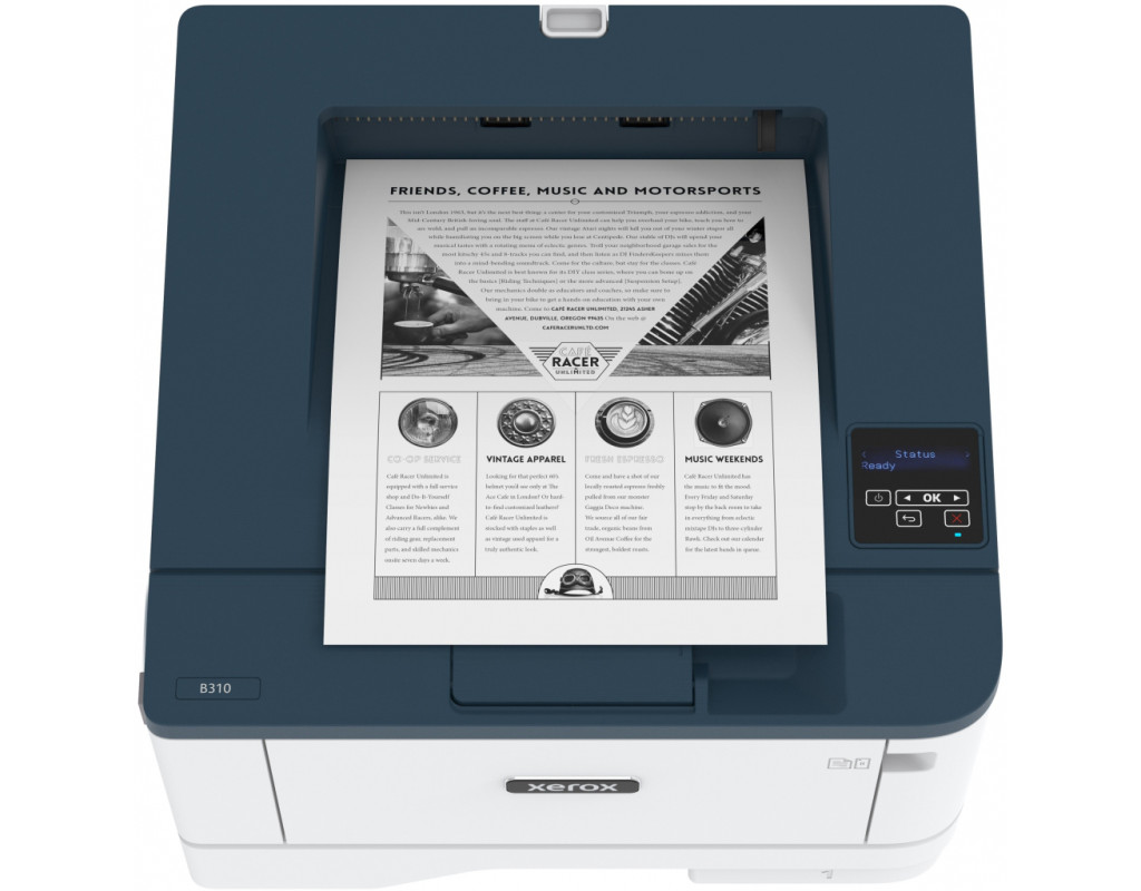 Нові умови роботи малого, середнього бізнесу та співробітників, що працюють віддалено, потребують удосконалення методів друку. Представляємо швидкий і компактний чорно-білий принтер Xerox® B310. Ця «робоча конячка» ідеально підходить для невеликих організацій і домашнього друку, а також для будь-яких невеликих приміщень. Принтер B310 відразу готовий до роботи, він відрізняється простотою і надійністю, щоб друкувати більше і швидше. Готовий до роботи з мобільними пристроями Друкуйте безпечно з будь-яких мобільних пристроїв за допомогою Apple AirPrint, Mopria, засобів друку Chromebook, Wi-Fi і Wi-Fi Direct®. Він дозволяє вільно друкувати документи на ходу, передаючи їх по бездротовій мережі. Наскрізний захист Функції комплексної захисту допомагають боротися зі зростаючими й ускладнюються кіберзагрозами, регулюючи доступ і охороняючи конфіденційні дані і документи. Просте і легке налаштування Завдяки розумному ПО Xerox® Smart Start ви заощадите час на настройку принтера перед друком. Підключіться до домашнього або корпоративного Wi-Fi за лічені хвилини. І найцікавіше: не потрібна допомога ІТ-фахівців. Маленький, тихий і потужний Велика продуктивність укладена в компактний принтер, який можна поставити де завгодно. Надтиха друк на високих швидкостях дозволяє звести до мінімуму простої. Просте управління в один дотик Драйвери друку Xerox® і додаток Xerox® Print & Scan Experience забезпечують зручний доступ до готових налаштувань принтера і функцій друку з ноутбука або настільного ПК. Налаштуйте свій B310 як хочете, легко, одним клацанням миші. Надійна робота день за днем Економте гроші і час - витрачайте на експлуатацію та обслуговування менше, а устигайте більше завдяки неперевершеній надійності. Ставайте екологічніше за рахунок легкої переробки картриджів за допомогою нашої програми Xerox Green World Alliance. |